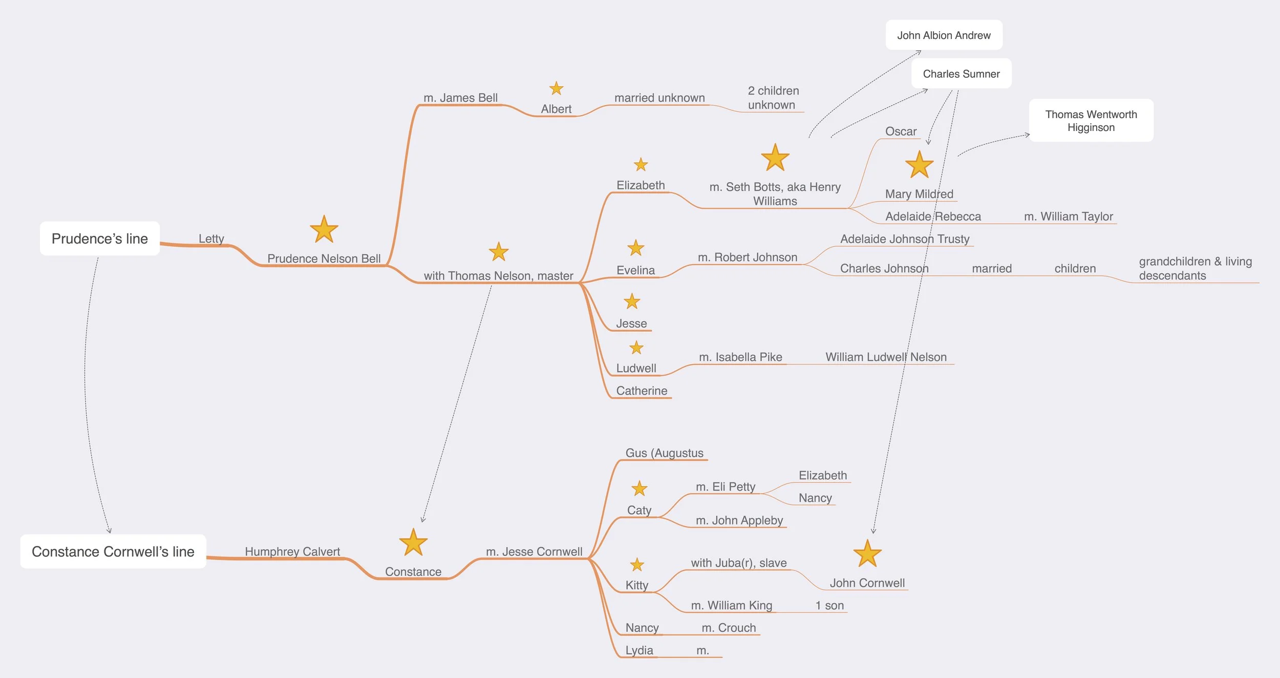 Folks have asked me, why don’t you include a family tree in your book? We decided not to because the lineages are not as important as the stories. Even if you are confused about how these people are related, their actions and their outcomes read the same. But I grant that it can be difficult to keep track of who’s who, so here you go.
